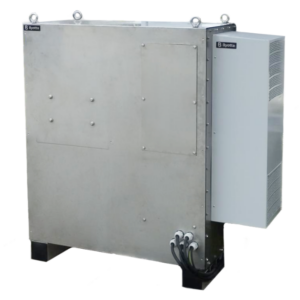 Moduły zamknięte są w szczelnych stalowych obudowach z zabezpieczeniami zwiększającymi bezpieczeństwo użytkowania.