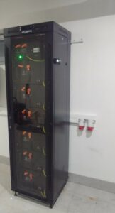 W ramach projektu dostarczyliśmy magazyn energii w zabudowie wewnętrznej. Magazyn energii współpracuje z instalacją fotowoltaiczną i działa w systemie off-grid, gdyż klienta posiada już pod danym PPE instalację on-grid.